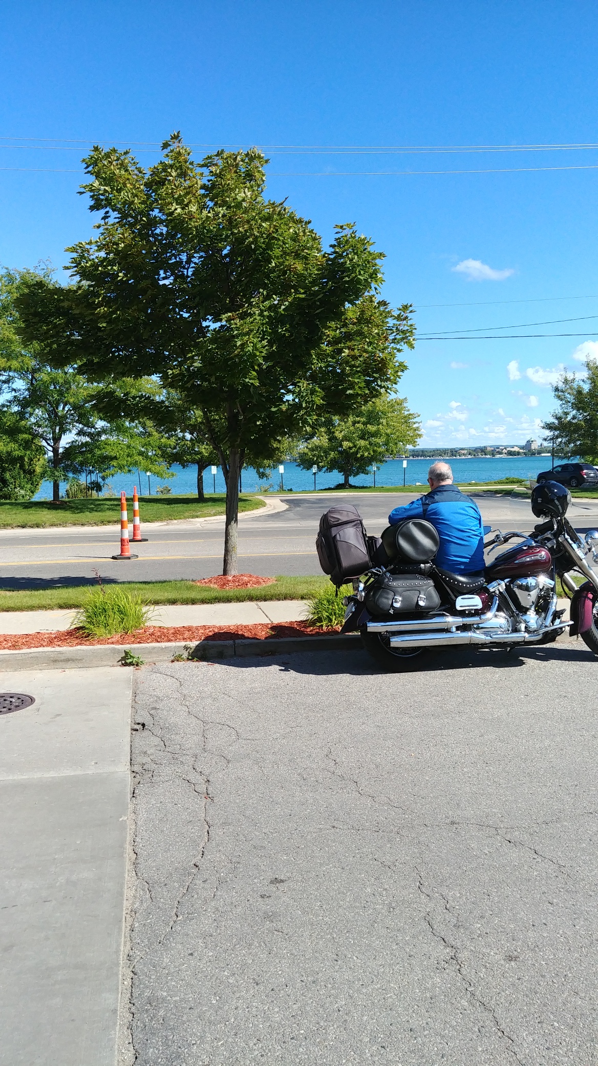 It was cold;not cool–cold. 50’s cold on Wednesday morning in Cadillac, MI. We headed to Midland for two reasons: 1) There is a Grand Traverse Pie Company store there, and 2) It is on the way to see George and Sharon Krieger down near St. Charles, MI. Andy had mentioned seeing them as a possibility on this trip; so we thought Wednesday would be a good day to do it.