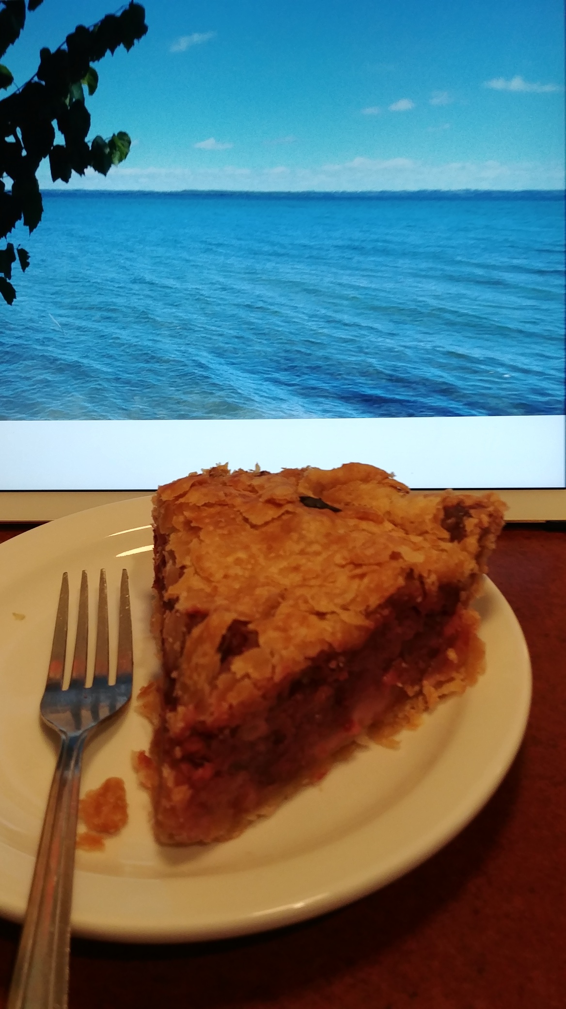 First, the pie. I got creative with the iPad screen-shot as a background for the pie (cherry, of course; just like mama made):